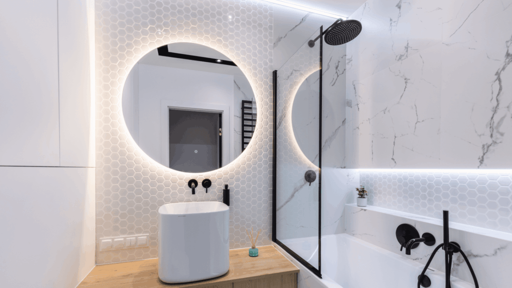 Proper lighting can make a small bathroom feel more spacious and inviting. Combine ambient lighting with task lighting to create a well-lit space. Recessed lighting, wall sconces, or a large mirror with built-in lighting can brighten the room and make it appear larger. Don’t forget to utilize natural light by keeping windows unobstructed or using frosted glass to maintain privacy while letting light in.